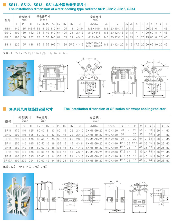 SS11、SS12、SS13、SS14水冷散热器安装尺寸