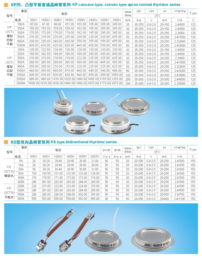 KP凹、凸型平板普通晶闸管系列